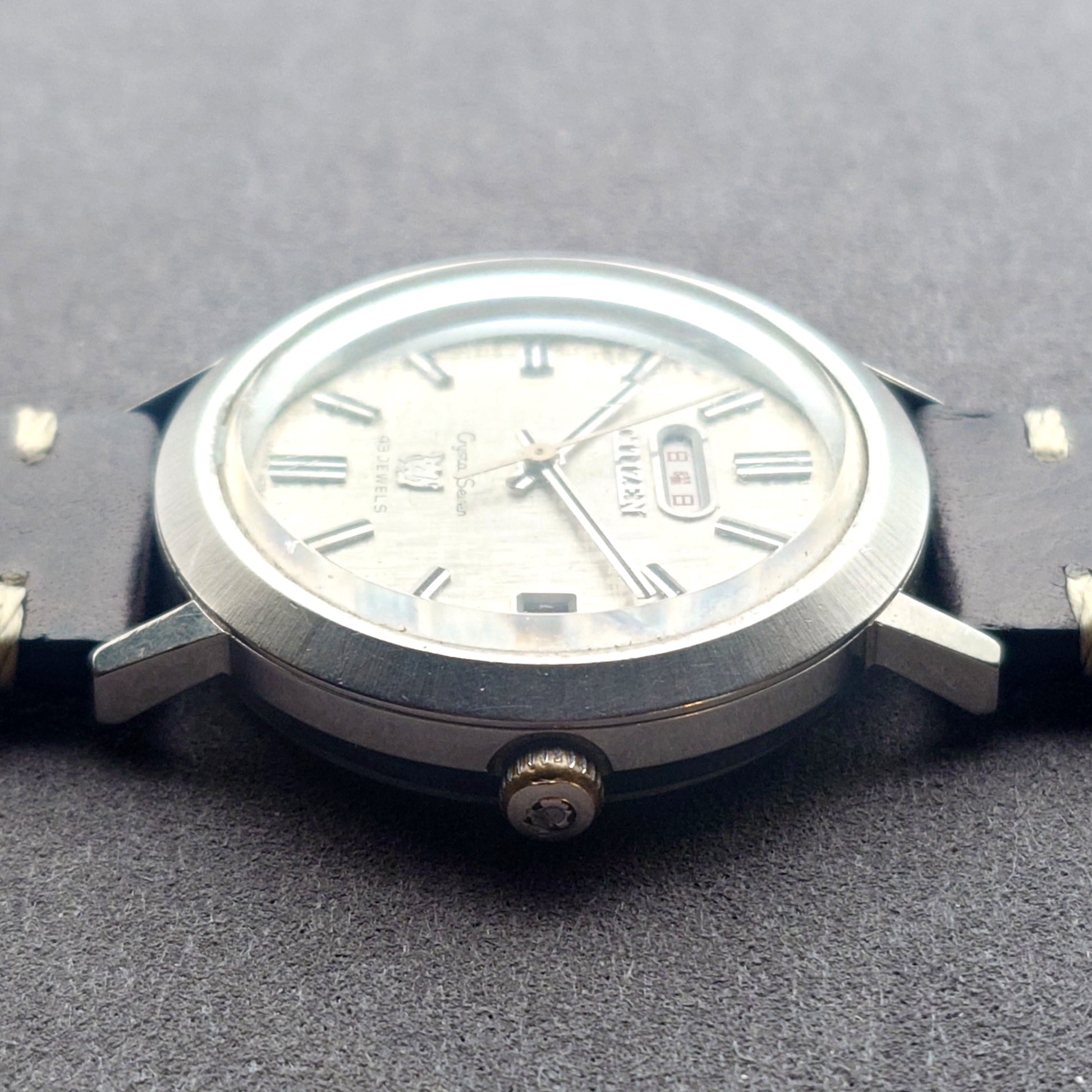Among the iconic models of the 1960s, the Citizen Crystal Seven, this piece represents a higher-grade version equipped with the 43-jewel movement, the highest jewel count within the series.