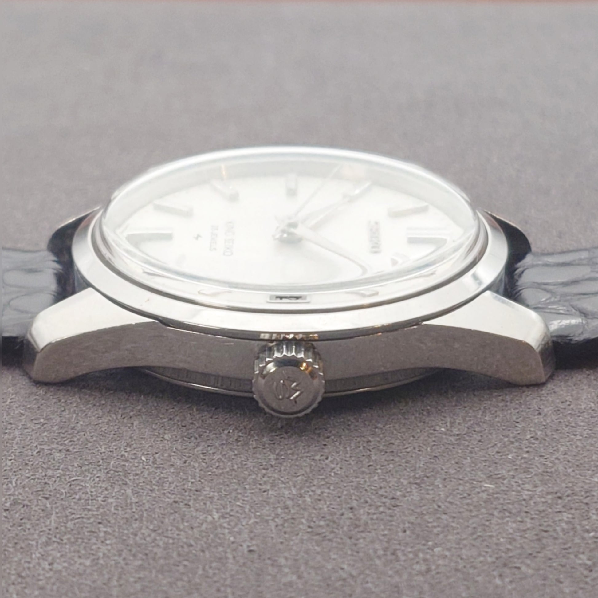 The watch is fitted with a new alligator leather strap and comes complete with an original King Seiko signed buckle.